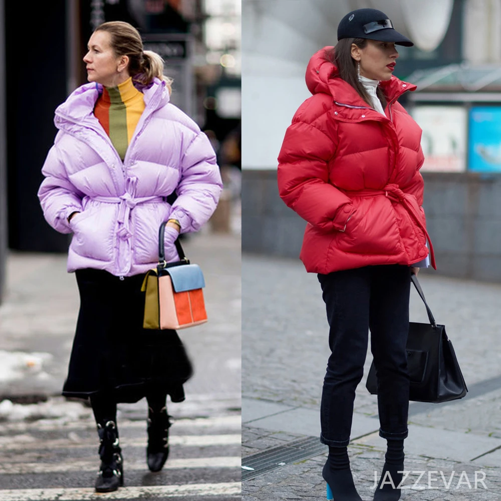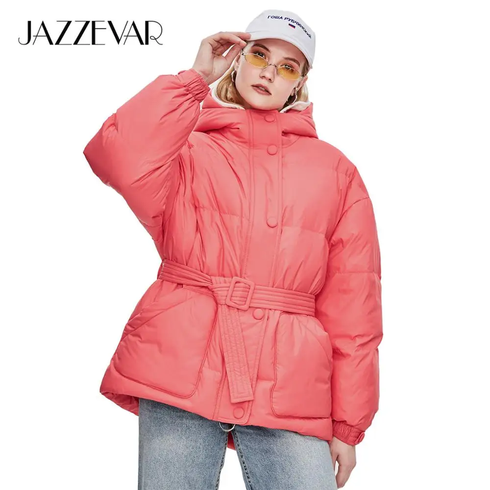 Product Name: JAZZEVAR 2019 zima nowe mody Street Designer marka damska 90% kaczki dół kurtki ładne dziewczyny odzież wierzchnia płaszcz z paskiem z18004