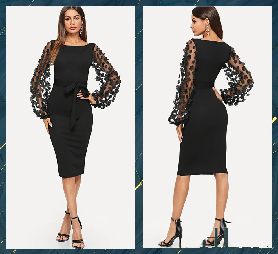 . (Zniżka 30%) Skup Czarna impreza elegancka aplikacja kwiatowa kontrastowa siatkowa koszulka dopasowana forma opasana jednolita sukienka damska Streetwear sukienki Najtaniej Ceny.