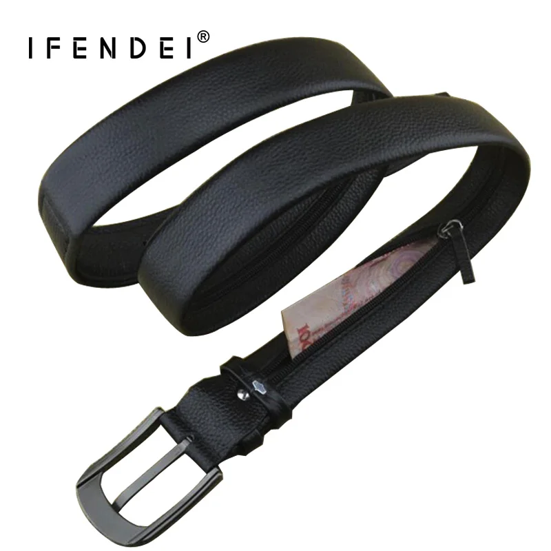 Special Offer IFENDEI pieniądze skórzany pasek na męski luksusowy markowy pasek czarny projektant tajny kieszonkowy pasek schowane pieniądze prawdziwy skórzany pasek Discount 32% Today!