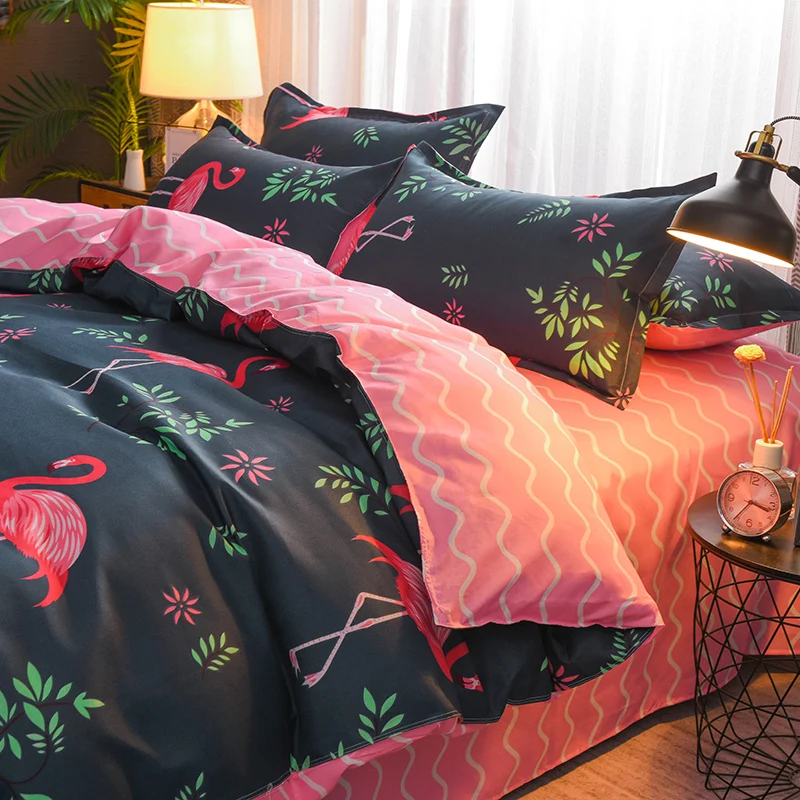 Product Name: Pościel flamingo zestaw luksusowe czerwony żuraw 3 4 sztuk zestaw rodzinny narzuta na kołdrę i prześcieradło poszewka na poduszkę pokój narzuta, bez wypełniacza 2019 łóżko zestaw
