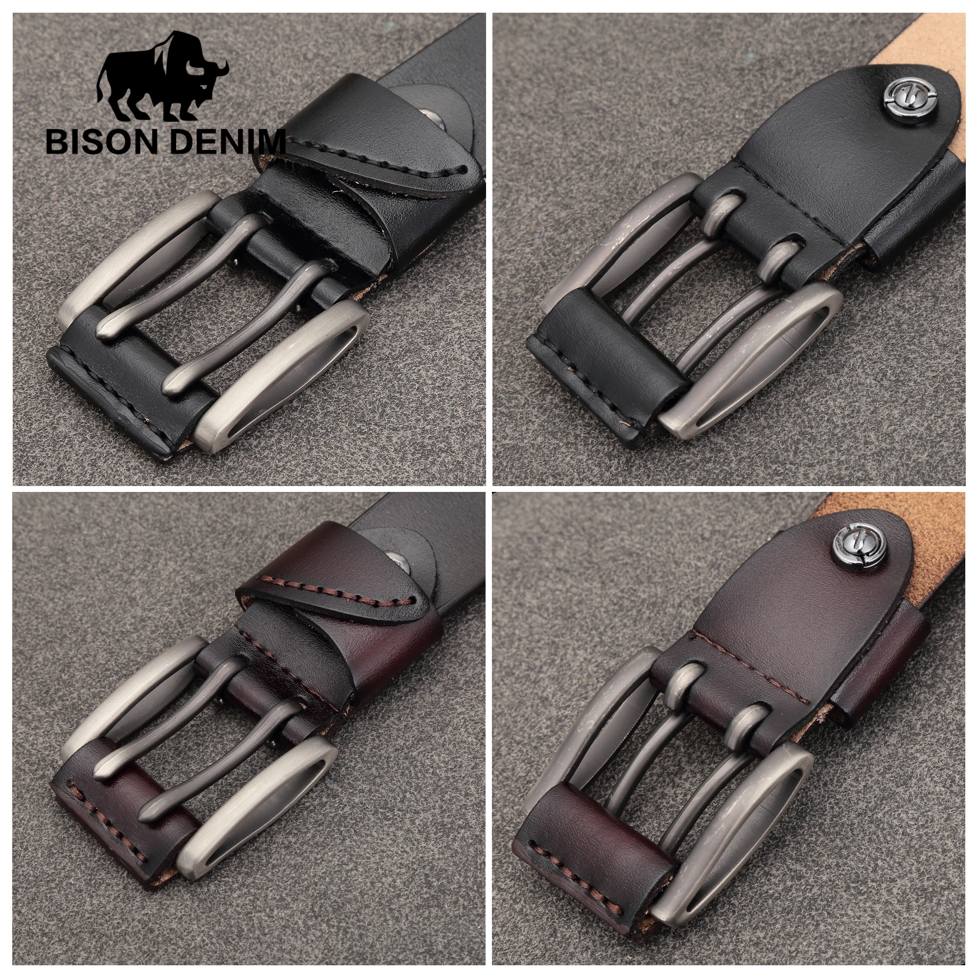 Product Name: BISON DENIM nowych mężczyzna pas prawdziwej skóry męskie pasy Vintage skórzany pasek z klamrą pas dla mężczyzn boże narodzenie noworoczny prezent N71247