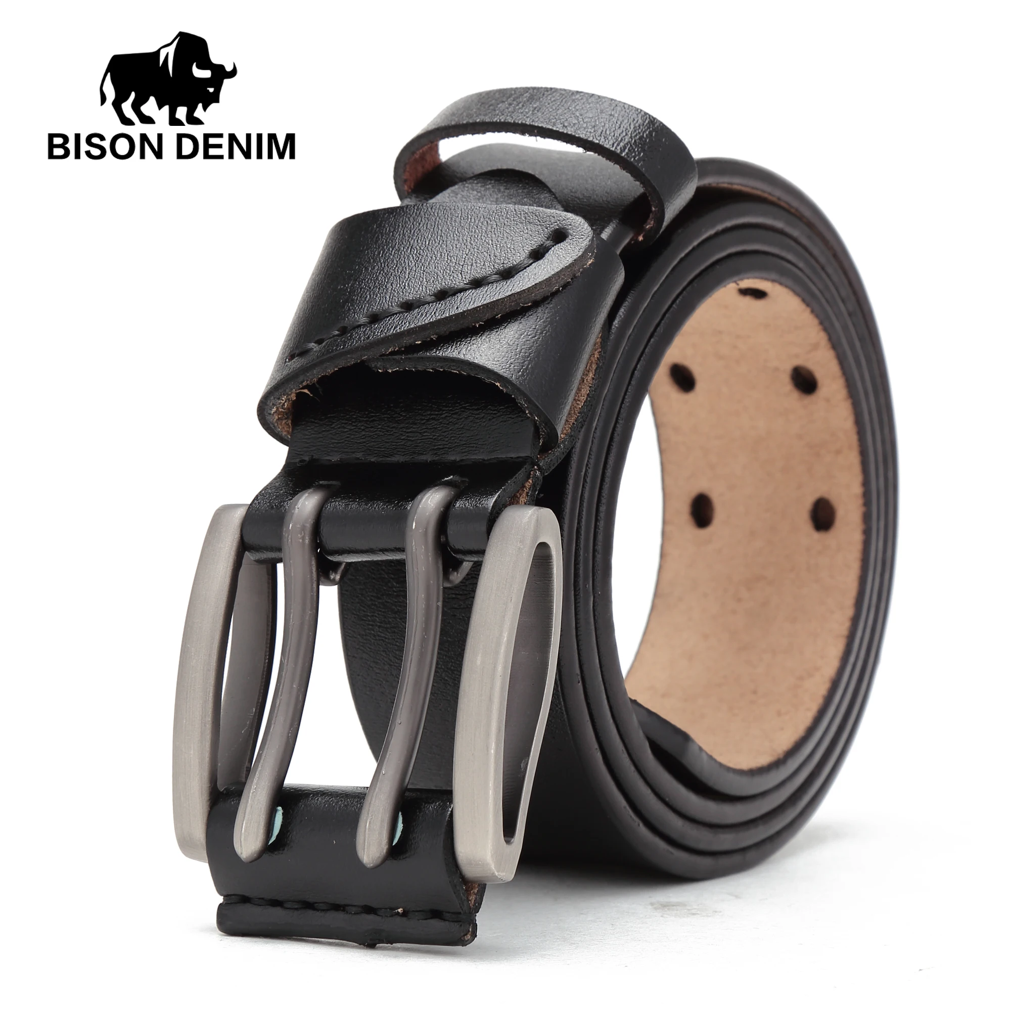 Special Offer BISON DENIM nowych mężczyzna pas prawdziwej skóry męskie pasy Vintage skórzany pasek z klamrą pas dla mężczyzn boże narodzenie noworoczny prezent N71247 Discount 55% Today!