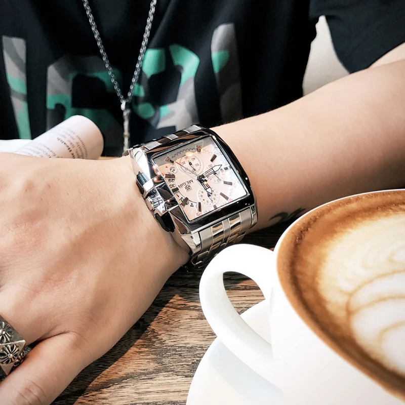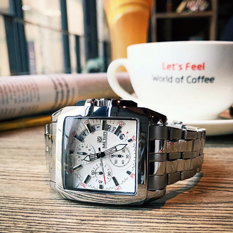 Special Offer MEGIR mężczyźni duża tarcza moda biznes analogowy zegarek kwarcowy ze stali nierdzewnej stalowy pasek zegarki sportowe zegar męski Relogio Masculino Discount 90% Today!