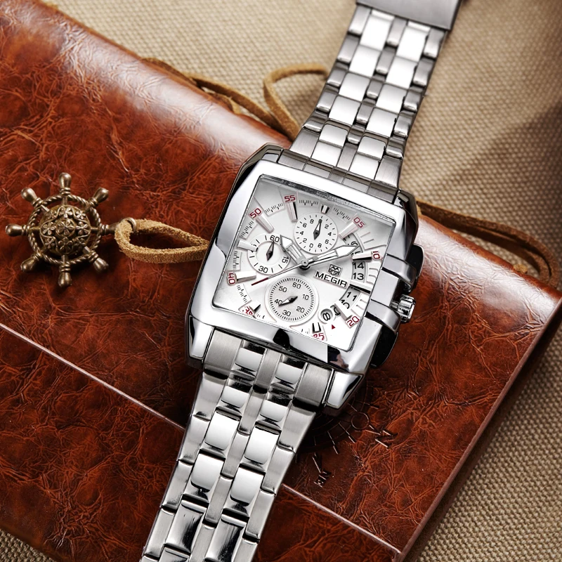Product Name: MEGIR mężczyźni duża tarcza moda biznes analogowy zegarek kwarcowy ze stali nierdzewnej stalowy pasek zegarki sportowe zegar męski Relogio Masculino