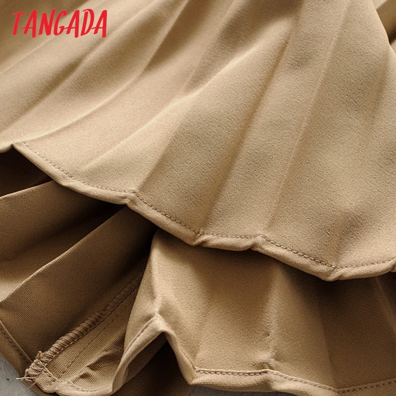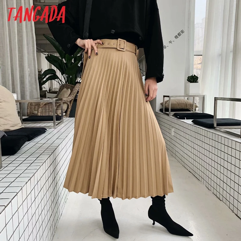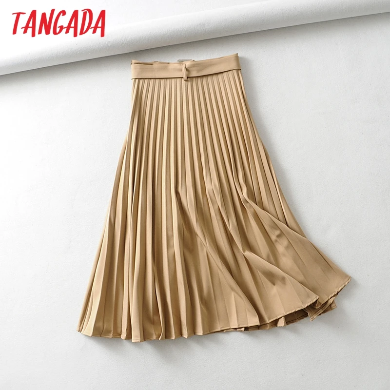 Special Offer Tangada kobiety khaki plisowana spódnica trzy czwarte vintage z paskiem jednolity, damski biurowa, damska odzież do pracy eleganckie spódnice do połowy łydki 6A306 Discount 30% Today!