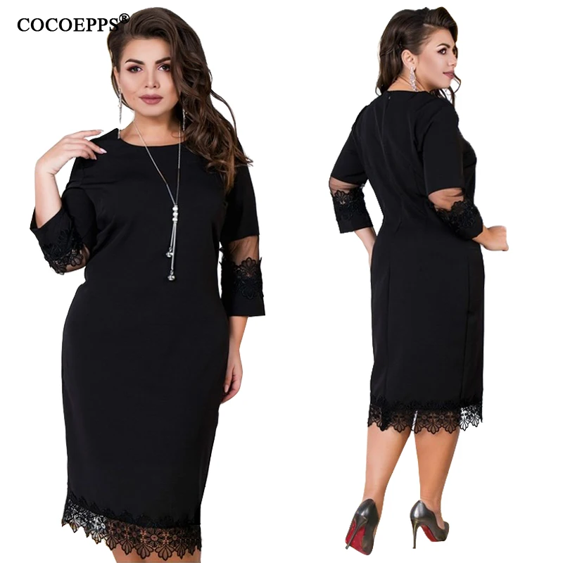 . (Zniżka 40%) Skup 5XL 6XL 2019 jesień Plus rozmiar koronkowa sukienka kobiety dorywczo duża duża siatka patchworkowa sukienka biurowa, damska elegancka odzież imprezowa Najtaniej Cena.