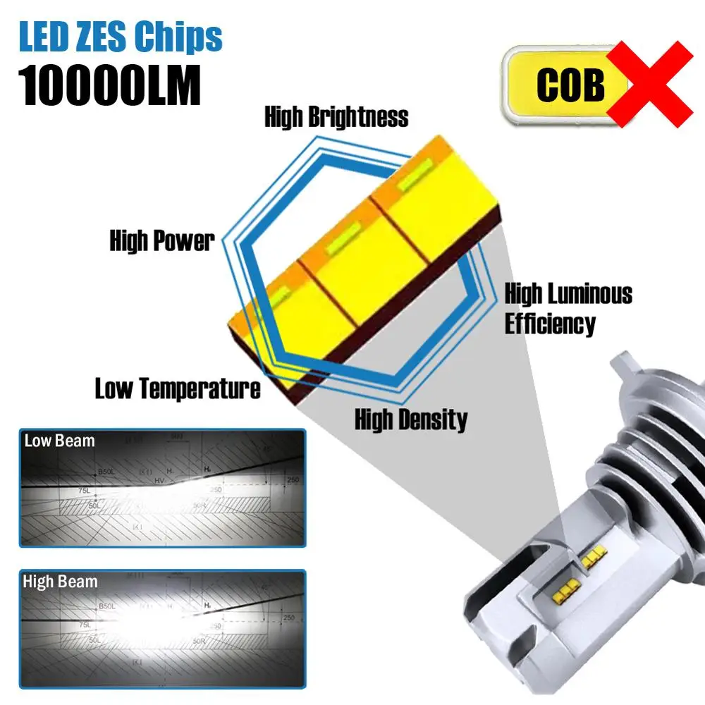 Product Name: LED H4 LED motocykl samochodowy LED żarówki do przednich reflektorów hb2 9003 nieniszcząca wysoka martwa wiązka ZES Chips bezprzewodowa wtyczka bezpośrednia