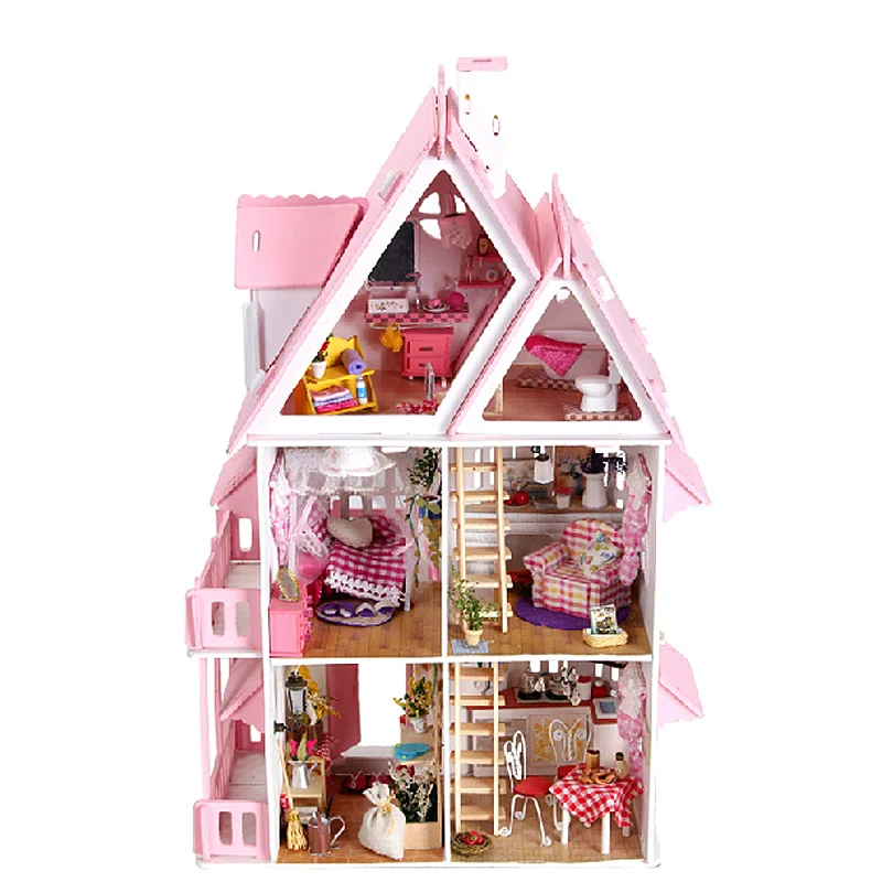 Special Offer Duży rozmiar trzy warstwy diy do lalek dom duże drewniane domy dla lalek miniaturowe mebelki do domku dla lalek zestaw urodziny zabawki prezentowe dla dzieci Discount 60% Today!