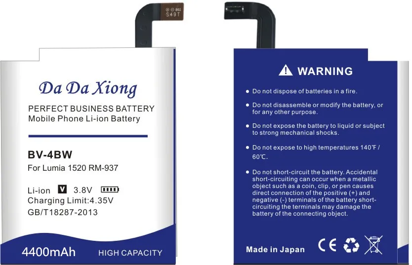 Product Name: Da Da Xiong 4400mAh BV4BW BV 4BW bateria do Nokii Lumia 1520 MARS Phablet RM 937 Bea Lumia1520 baterii telefonu