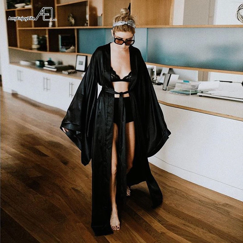 . (Zniżka 17%) Tanie AEL moda luźna miękka wygodna noc szata kobiety pas szlafrok damski sen seksowna bielizna nocna Shift 2017 wybierz 3 kolor Cena.