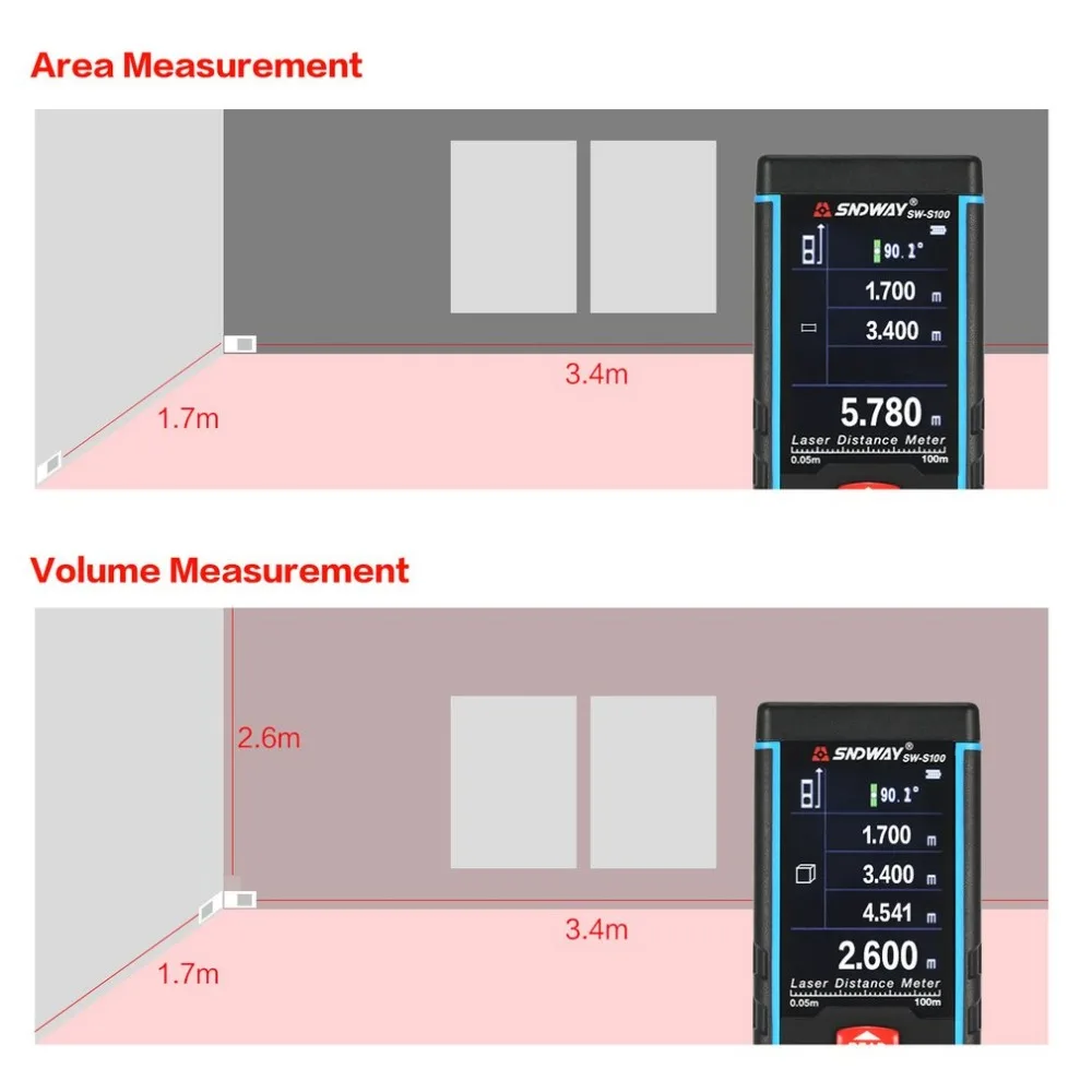 Special Offer SNDWAY SW S100 100M laser ręczny miernik odległości dalmierz Trena taśma miernicza laserowa narzędzie odległości dalmierz Discount 28% Today!