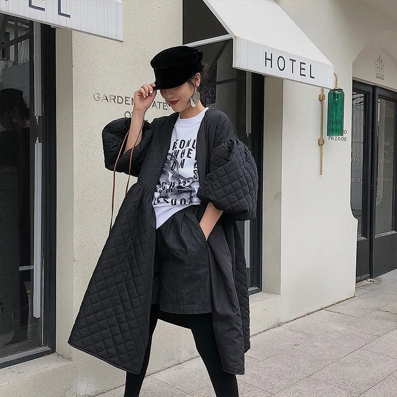 . (Zniżka 28%) Tanie SHENGPALAE 2020 czarny koreański modne kurtki nowy V kołnierz pół rękawa luźne duże osobowości duże Hem płaszcz kobiety JL103 Cena.