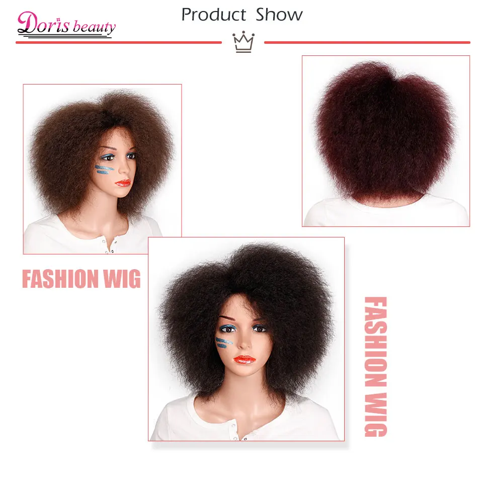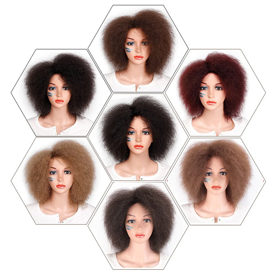 Product Name: Syntetyczna peruka afro dla kobiet afrykańska ciemnobrązowa czarna czerwona kolor Yaki prosta peruka krótka Cosplay włosy