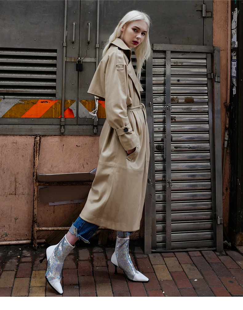 . (Zniżka 20%) Skup 2019 moda jesień nowy kobiety PU kurtka wiatrówka kobiet długi płaszcz skóra lakierowana slim była cienka koronka up skóra znosić L1194 Najtaniej Ceny.