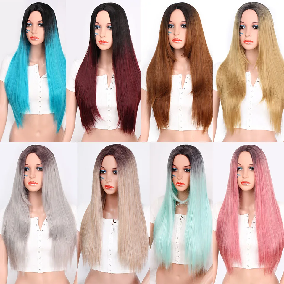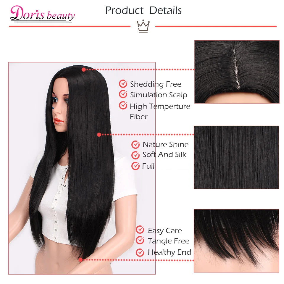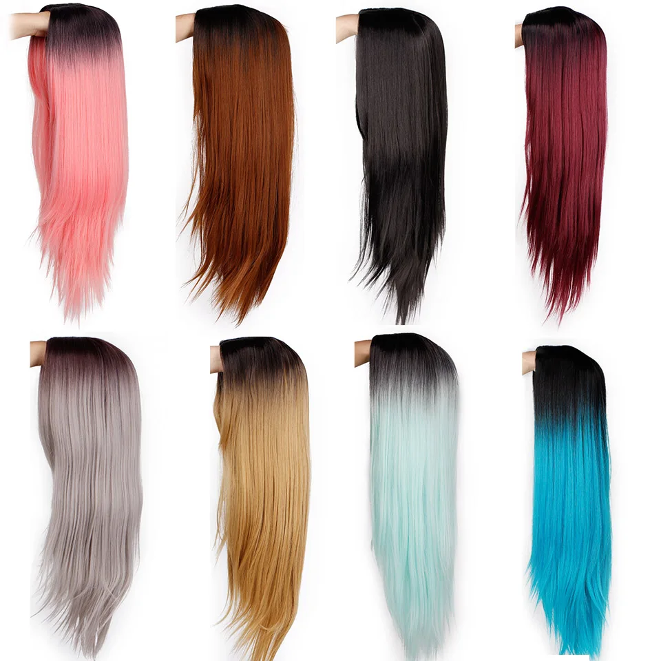 Product Name: Doris beauty długa czarna peruka syntetyczna prosta peruka ombre czerwony różowy zielony włosy blond dla kobiet Cosplay włókno termoodporne