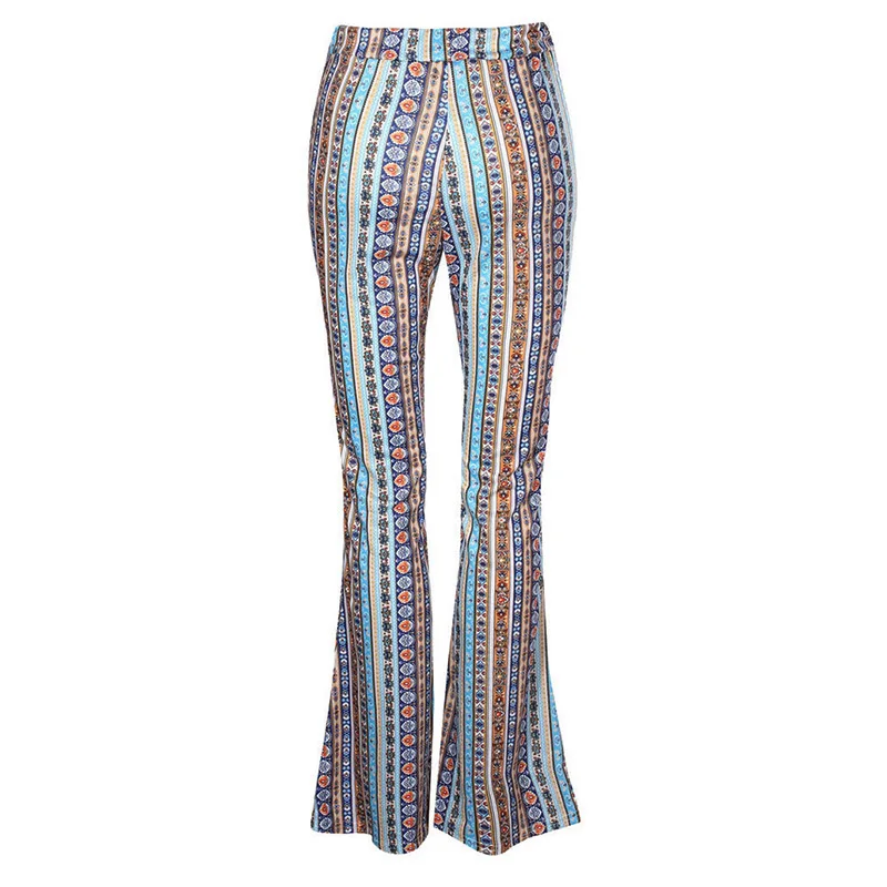 Product Name: Eleganckie spodnie flare Boho damskie nadruk w paski Hippie spodnie wysokie w pasie Vintage Stretch etniczne spodnie w stylu Bell Bottom