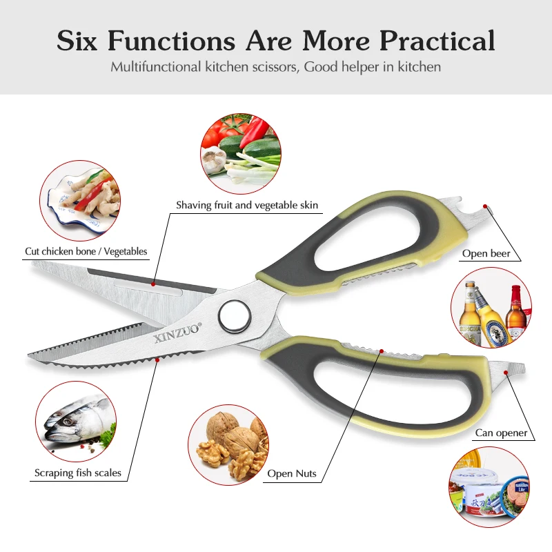 Product Name: XINZUO nożyczki kuchenne nożyce ze stali nierdzewnej narzędzie do użytku domowego dla drobiu kurczaka ryby mięso warzywa zioła BBQ nowe narzędzie do gotowania