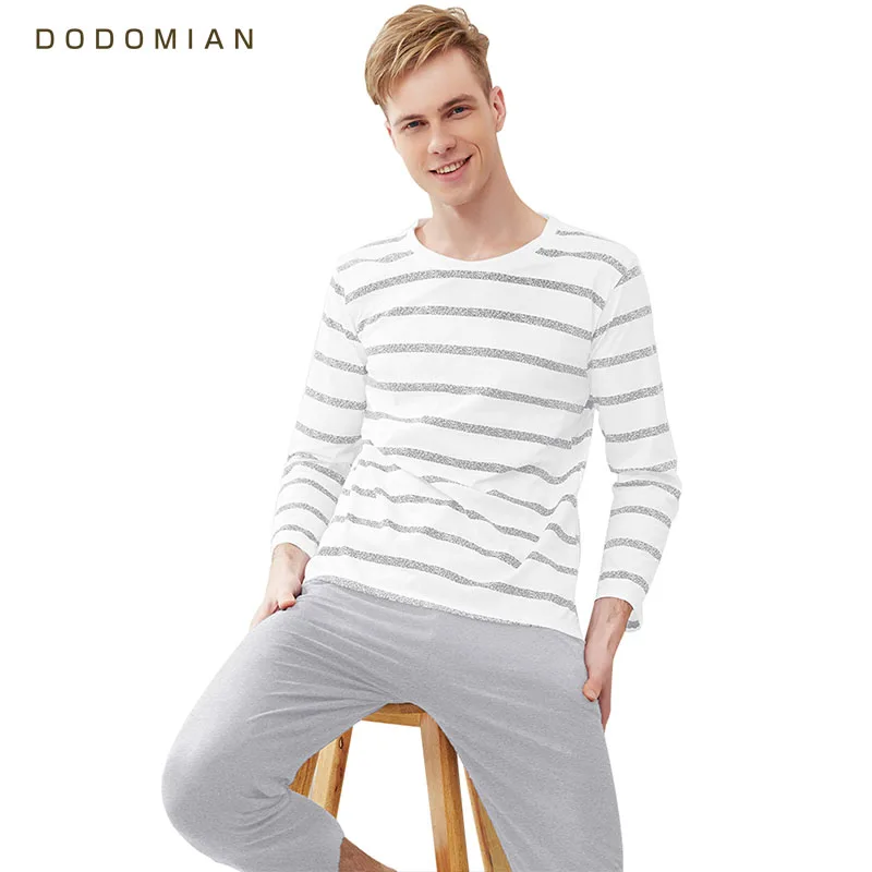 Special Offer Mężczyźni piżama szara, bawełniana w paski O neck bielizna nocna mężczyźni DODOMIAN ubrania domowe Plus rozmiar L 3XL wysokiej jakości bielizna męska zestaw Discount 42% Today!